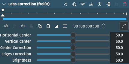 This effect may produce different results than Lens Correction (avfilter) although the name may suggest the only difference is the effects library. Lens Correction (frei0r) uses frei0r.lenscorrection, whereas Lens Correction (avfilter) uses avfilter.lenscorrection. There are different options available in each effect.