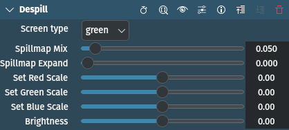 Permite eliminar la contaminación no deseada en los colores de los elementos frente a cámara, causada por el color reflejado desde una pantalla verde o azul en el fondo