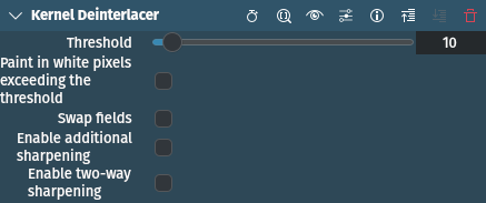 Este efecto permitirá desentrelazar la imagen de un video mediante la aplicación del método de desentrelazado de núcleo adaptativo de Donald Graft. Funcionará en las partes entrelazadas de un video, produciendo fotogramas progresivos.