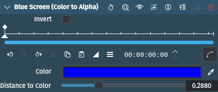 Trasforma il colore selezionato nel canale alfa (effetto schermo blu o verde).