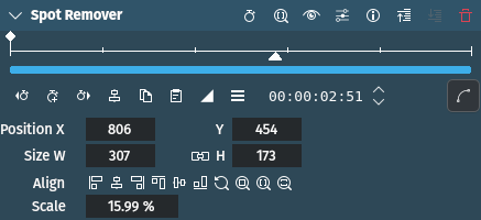 Sostituisci un’area con dei pixel interpolati. I nuovi valori dei pixel sono interpolati da quelli più vicini immediatamente fuori dall’area specificata. Regola la dimensione e la posizione in base alle tue necessità usando il rettangolo rosso[1] nel controllo del progetto.
