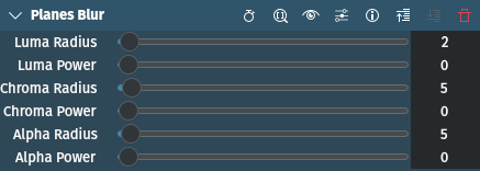 Questo effetto si applica solo a tre Piani: Luma, Chroma e Alfa. Per determinare la forza dell’effetto puoi definire il Raggio e la Potenza.