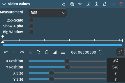 Questo effetto/filtro disegna e sovrappone alla clip una finestra che mostra una versione ingrandita dell’area coperta da un piccolo mirino, e specifica i valori dell’area coperta del flusso video.
