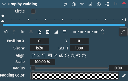 De parameters Positie X, Y, Grootte W, H, Schaal kan gebruikt worden om de rechthoek of cirkel te verplaatsen en/of te schalen binnen het frame om een specifiek gedeelte van de afbeelding af te snijden.