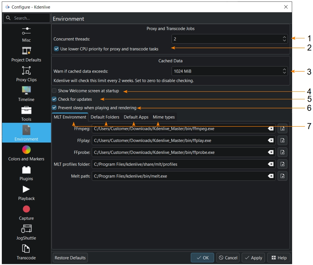 Omgevingsvariabelen in Kdenlive geïnstalleerd in Linux¶