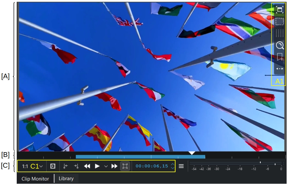Kontrolniki vmesnika Kdenlive (primer: plošča ogleda)¶