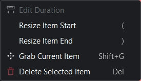 Edit Duration: Opens a dialog window where the duration of the clip can be changed with frame-precision.