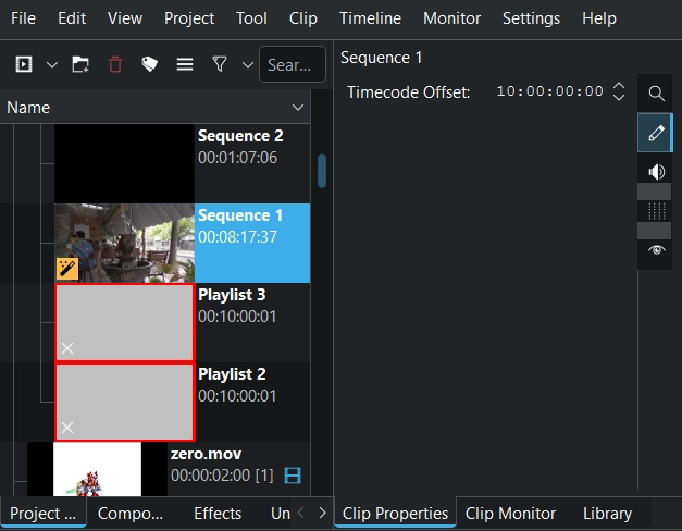 Якщо на панелі контейнера проєкту позначено послідовність, ви можете змінити її часовий зсув. Докладніше про це у розділі щодо часового зсуву послідовності.
