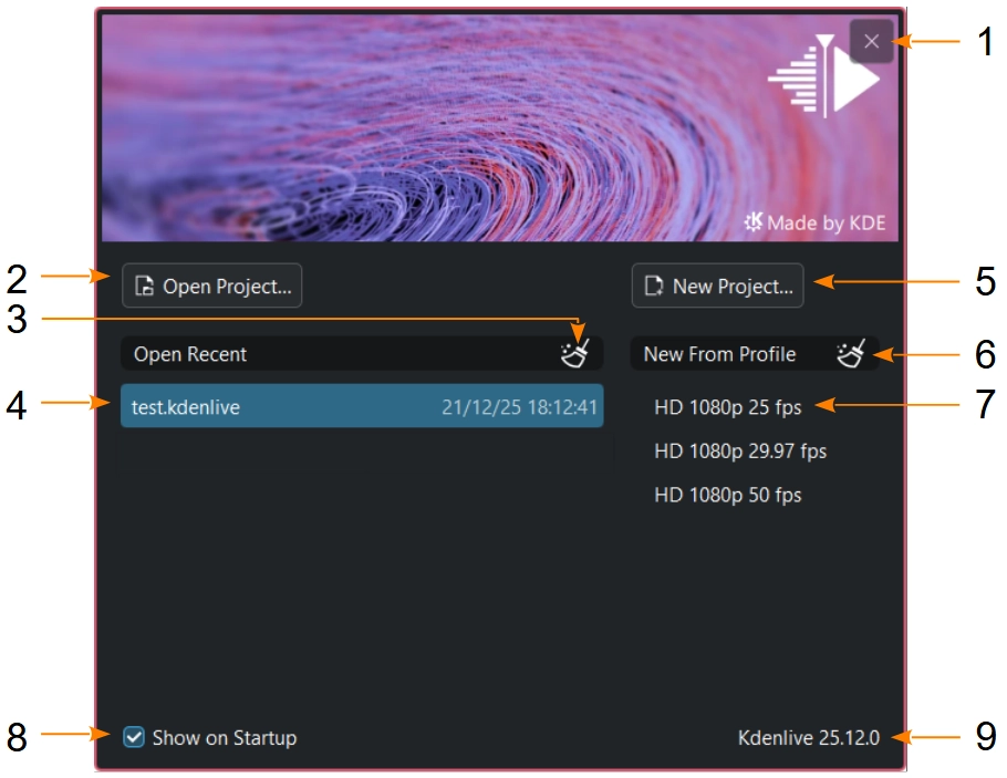 Типове вікно вітання Kdenlive¶