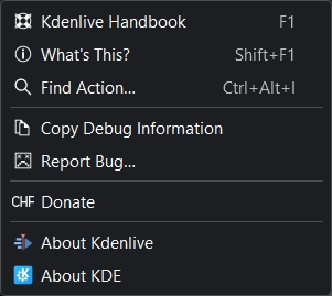 Меню «Довідка» Kdenlive¶
