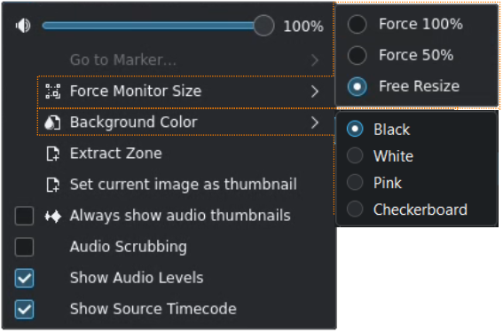 На моніторі кліпу буде показано нередагований[1] кліп, який позначено на панелі контейнера проєкту. Він працює так само і надає такі самі можливості, що і Монітор проєкту, окрім піктограми , яка додає ділянку кліпу на панель контейнера проєкту, яка стає дочірнім кліпом позначеного кліпу. Див. Створення ділянок, щоб дізнатися більше.